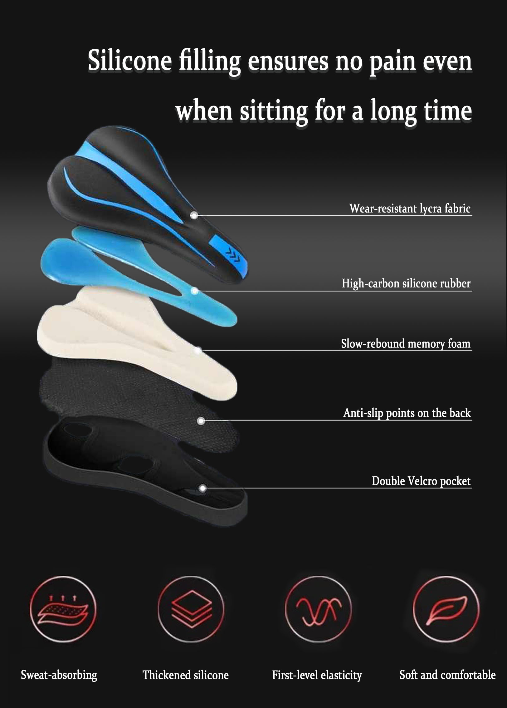 Silicone filling, no pain when sitting for a long time, reduces pressure, and says goodbye to the pain of jolting