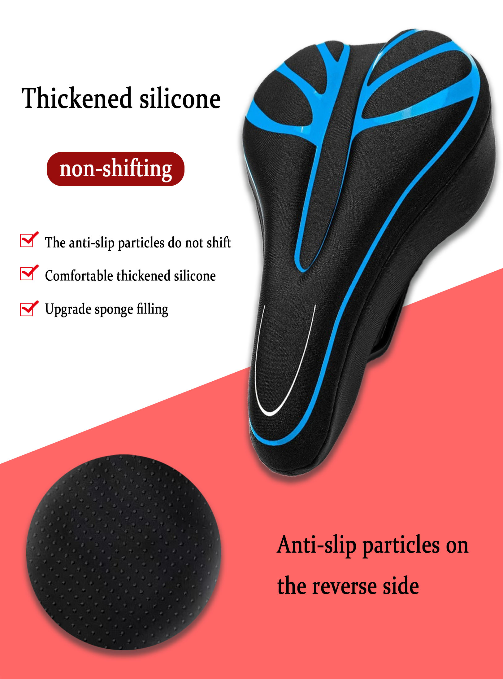 Sweat-absorbing and breathable, the central breathable groove ensures good ventilation and dryness, making riding more comfortable